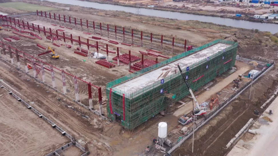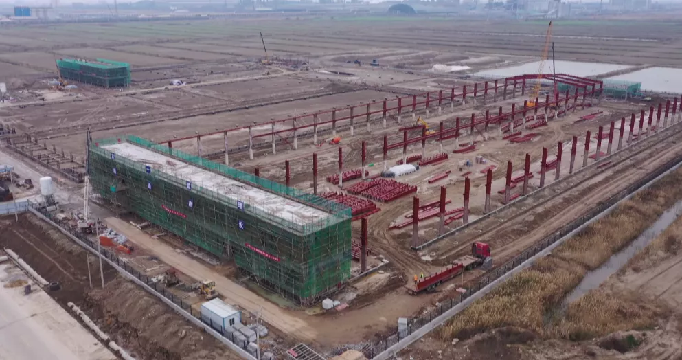 走進(jìn)大豐港區(qū)昆侖綠建項(xiàng)目建設(shè)現(xiàn)場,工人們正在緊張作業(yè),鋼管架密如織網(wǎng)、轟鳴聲震耳欲聾、運(yùn)輸車來回穿梭,現(xiàn)代化的廠房即將拔地而起。