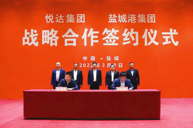 張乃文表示,譜寫(xiě)“強(qiáng)富美高”新鹽城現(xiàn)代化建設(shè)的新篇章,最大優(yōu)勢(shì)在沿海、最大機(jī)遇在沿海。在沿海開(kāi)發(fā)疊加機(jī)遇和“雙碳”背景下,悅達(dá)集團(tuán)與鹽城港集團(tuán)強(qiáng)強(qiáng)聯(lián)合,協(xié)同發(fā)力能源、汽車(chē)、物流、金融、基金等領(lǐng)域,既貫徹了市委、市政府關(guān)于打造特色優(yōu)勢(shì)產(chǎn)業(yè)、優(yōu)化國(guó)有資本戰(zhàn)略布局的重大部署,又有利于兩大集團(tuán)發(fā)揮各自主業(yè)優(yōu)勢(shì),推進(jìn)融合互補(bǔ)發(fā)展。希望雙方以此次戰(zhàn)略合作為契機(jī),加快推進(jìn)重大項(xiàng)目落地達(dá)效,攜手打造我市國(guó)企合作示范標(biāo)桿,奮力扛起“爭(zhēng)當(dāng)表率、爭(zhēng)做示范、走在前列”光榮使命,為全市勇當(dāng)沿海地區(qū)高質(zhì)量發(fā)展排頭兵、推動(dòng)“強(qiáng)富美高”新鹽城現(xiàn)代化建設(shè)作出新的更大貢獻(xiàn)。