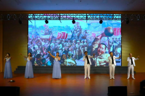 “資產公司作為鹽城港大家庭的年輕成員,我們希望用激昂的歌聲、鏗鏘的節奏,把干事創業激情和敢挑重擔、對使命的不懈追求融入到表演中,熱情謳歌集團三年來的光輝歷程和驕人成就,充分展現出資產公司凝心聚力、砥礪奮進的新氣象、新風貌。”資產公司代表隊領隊如是說。伴隨著一首激昂的《保衛黃河》,資產公司代表隊的成功演繹將現場氣氛推向了高潮。