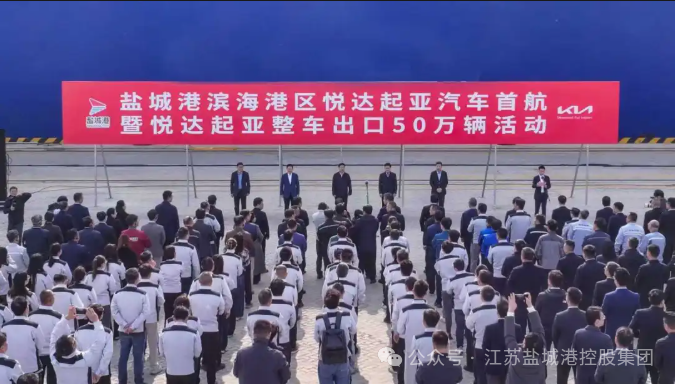 11月15日上午,悅達起亞整車出口第50萬輛裝船起航儀式在鹽城港濱海港區舉行,這也是悅達起亞汽車自大豐港區出口以來開通的新出海航線。市長嚴漢平出席儀式并宣布起航。