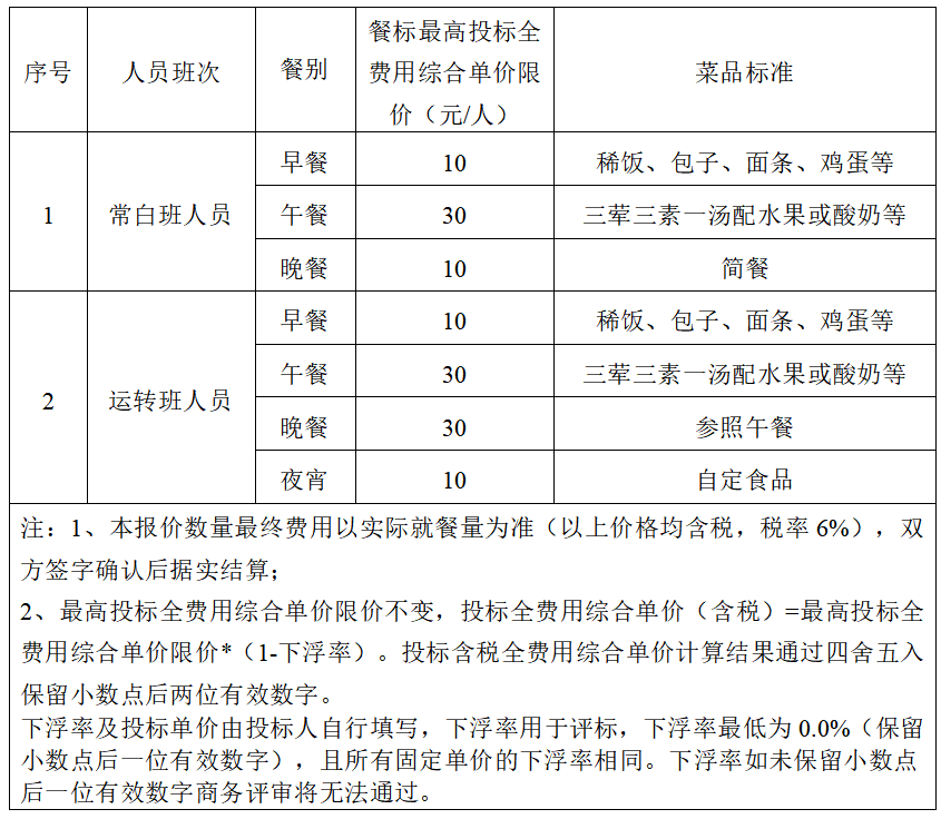 (6)招標范圍:鹽城港響水港區(qū)的常駐辦公地點包括響水港區(qū)機關(guān)、響水港務(wù)公司、響城港務(wù)公司及聯(lián)檢大樓,各需設(shè)立獨立食堂。響水港區(qū)每日就餐總?cè)藬?shù)約為180人,其中,機關(guān)食堂日均就餐人數(shù)約55人,響水港務(wù)公司食堂日均就餐人數(shù)約65人,聯(lián)檢大樓食堂日均就餐人數(shù)約35人,響城港務(wù)公司食堂日均就餐人數(shù)約25人。為了生產(chǎn)運營需要,每個食堂均需獨立運營。