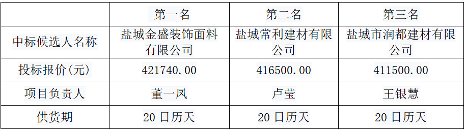 4、擬確定的中標人:鹽城金盛裝飾面料有限公司
