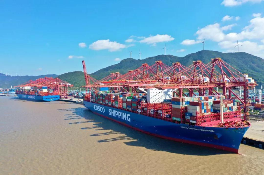 10月12日,隨著載箱量21237標準箱的“中遠海運宇宙”輪穩穩靠上寧波舟山港穿山港區集裝箱碼頭9號泊位,寧波舟山港今年已累計掛靠2萬標準箱及以上集裝箱船達200艘次,較去年同期增長56.25%。