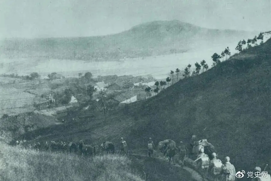 1945年4月6日,太行部隊(duì)等向白晉、同蒲沿線上的日軍展開攻擊。這是八路軍向祁縣開進(jìn)。