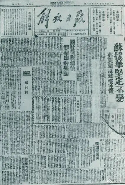 圖為1941年5月16日在延安創(chuàng)刊的中共中央機(jī)關(guān)報(bào)《解放日報(bào)》。
