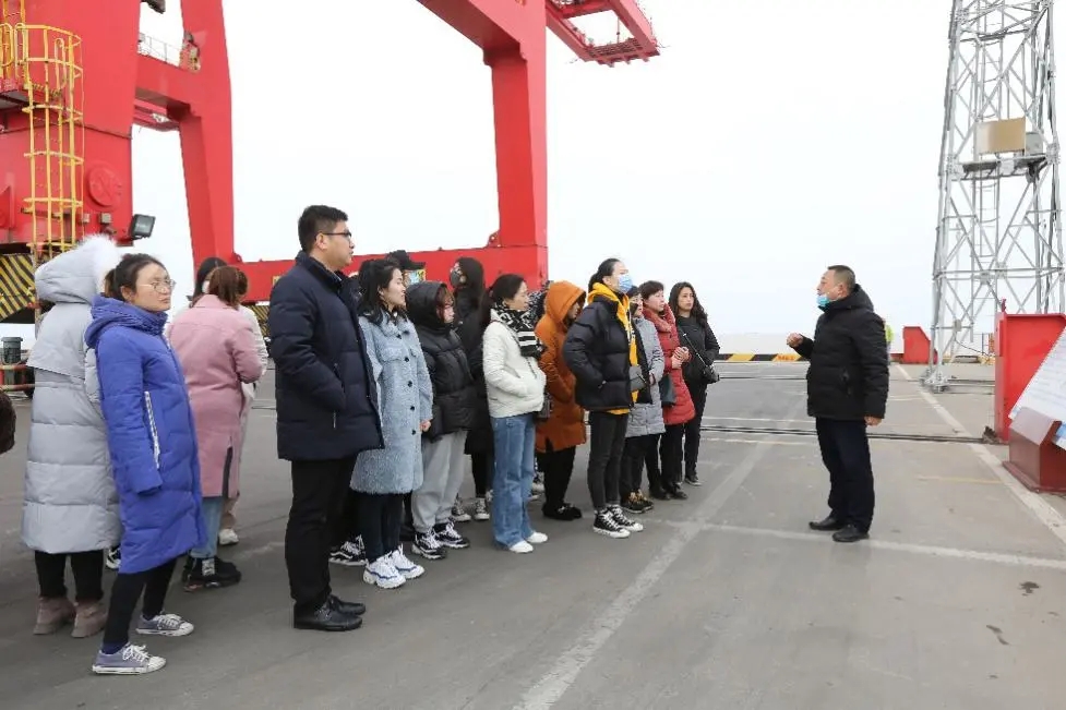 濱海港區單位女職工在生產經營部工作人員的帶領下,學習門機進行裝卸作業,了解碼頭從船舶靠岸的前期準備到靠泊后的裝卸作業的全部流程。