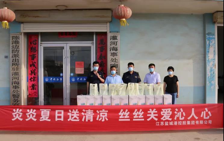 8月17日,集團(tuán)工會(huì)副主席戴禮娣率隊(duì)前往鹽城出入境邊防檢查站大豐港辦事處、鹽城海關(guān)駐大豐港辦事處、鹽城大豐海事處,開展“炎炎夏日送清涼 絲絲關(guān)愛沁人心”夏季慰問活動(dòng),慰問口岸一線工作人員,并送上防暑降溫慰問品。
