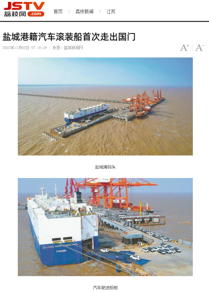 鹽城港籍汽車滾裝船首次走出國門