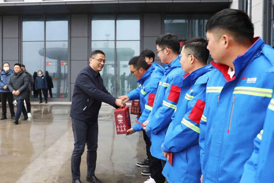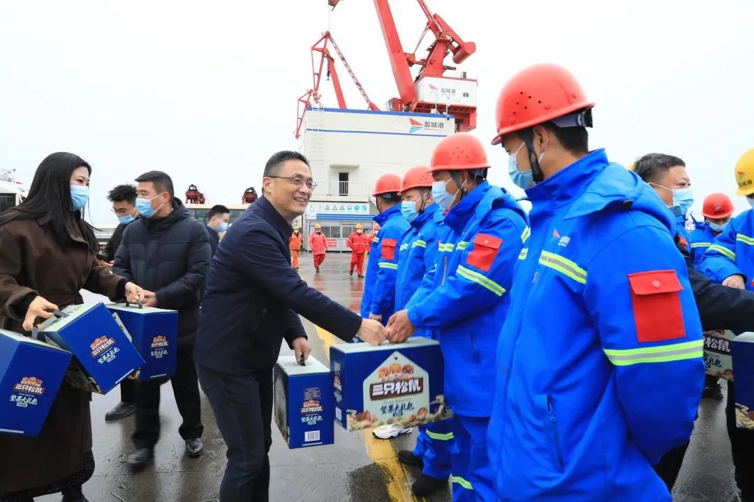 1月22日,大年初一,碼頭一線到處洋溢著節(jié)日喜慶氣氛。受集團黨委、董事會委托,當天上午,集團黨委副書記、董事、總經(jīng)理陸帥率隊前往大豐港區(qū)看望慰問堅守在一線工作崗位的工作人員,代表集團黨委、董事會向他們致以新春的祝福和節(jié)日的問候。鹽城海關二級高級主辦李健,集團副總經(jīng)理袁欣等參加。