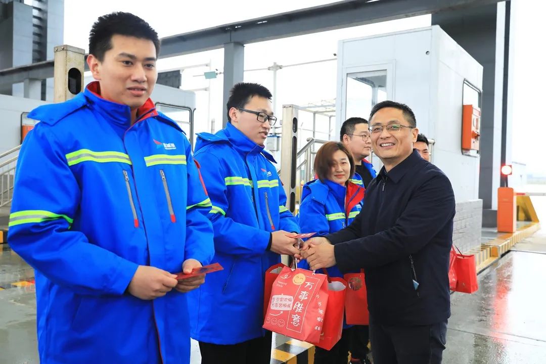 鹽城港港口公司2022年的貨物吞吐量再創(chuàng)歷史新高,為集團實現(xiàn)兩年翻番的目標作出了重要貢獻。在港口公司糧食碼頭,陸帥和堅守崗位的工作人員一一握手,感謝大家的默默奉獻以及為保障港口安全平穩(wěn)運行而付出的努力。他希望港口公司全體干部職工在2023年繼續(xù)以黨的二十大精神為指引,深入貫徹落實集團黨委一屆三次全體(擴大)會議部署要求,進一步提高政治站位,扎實履行好崗位職責,繼續(xù)發(fā)揚能吃苦、能戰(zhàn)斗、能奉獻、敢擔當?shù)膬?yōu)良作風,更加堅定目標信心,抓實抓牢碼頭生產經(jīng)營各項工作,為集團高質量融合發(fā)展再創(chuàng)佳績、再立新功。
