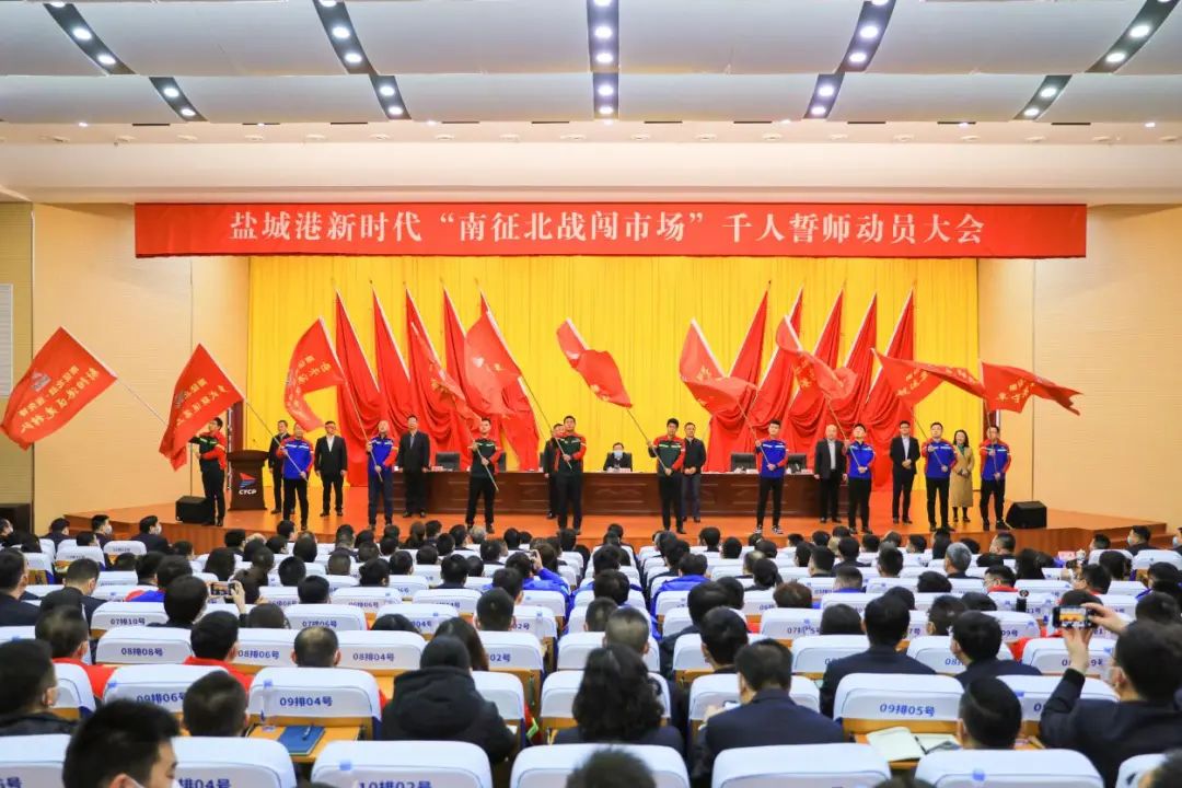 鹽城港新時代“南征北戰闖市場”百日攻堅千人誓師動員大會勝利舉行