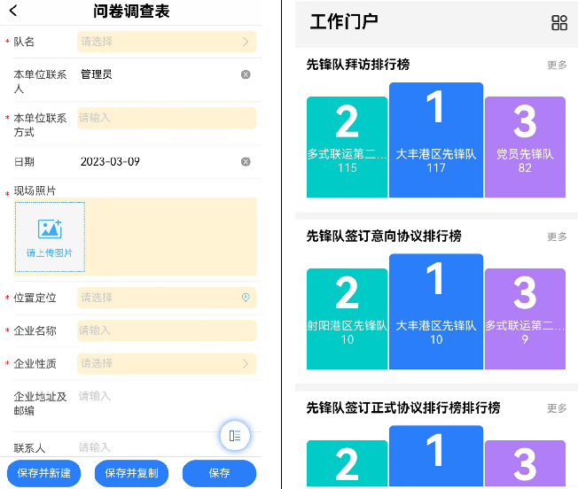 該系統集成了在線問卷、定位打卡、成果評比、統計分析等功能。與傳統的紙質問卷相比,該系統減少了表格錄入、匯總上報、統計分析等環節,實現了全過程無紙化、自動化操作,極大地提高了工作效率。同時,該系統還具備在線成果評比等功能,實時展現各先鋒隊工作成績,為進一步激發各先鋒隊你追我趕的戰斗激情提供了技術支撐。