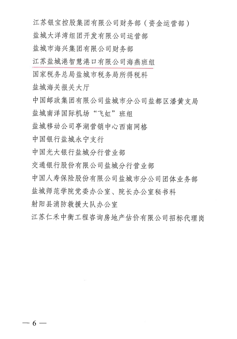 ????近日,市城鎮婦女“巾幗建功”活動領導小組、市農村婦女“雙學雙比”競賽活動領導小組、市婦女聯合會聯合發布《關于命名2021-2022年度全市城鄉婦女崗位建功先進集體(個人)的決定》,鹽城港智慧港口公司海燕班組榮獲“2021-2022年度鹽城市巾幗文明崗”榮譽稱號,鹽城港項目建設管理咨詢公司黨總支書記、執行董事、總經理劉春燕榮獲“2021-2022年度鹽城市巾幗建功標兵”榮譽稱號。