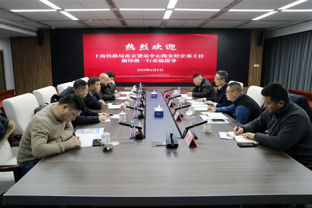 2月5日,上海鐵路局南京貨運中心海安經(jīng)營部主任蒯偉俊率隊拜訪集團(tuán),就建湖縣快捷鐵路貨場資質(zhì)辦理、后期運營管理等事宜進(jìn)行交流洽談,集團(tuán)黨委副書記、董事、總經(jīng)理陸帥接待蒯偉俊一行。集團(tuán)黨委委員、副總經(jīng)理梁洪兵,南京物流中心營銷部副科長姜建等參加。