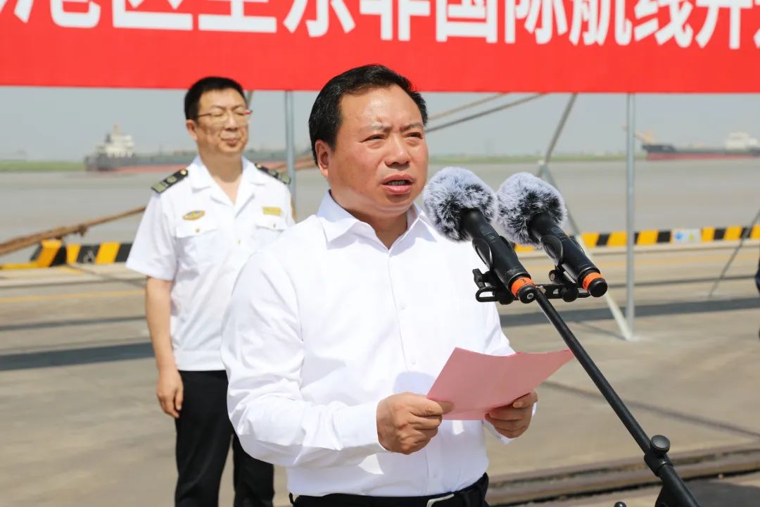王連春代表市委、市政府,對活動的成功舉辦表示祝賀。他指出,灌河口5萬噸級航道通航暨東非國際航線的開通,將大幅提高灌河口大型船舶的通航能力和港口的貨物吞吐量,對實現鹽城水運“四高三美”和物流企業降本增效,推動黃海新區等重點片區有效融入長三角一體化、淮河生態經濟帶等區域協同發展大局,起到重要的戰略支撐作用。鹽城港集團要優化港口航道規劃布局,推動物流通道強鏈補鏈,加速構建高效便捷順暢的綠色物流體系;交通運輸、海事等部門要深化海鐵等多式聯運發展和運輸結構調整,補強加密水運航線網絡,提升港航綜合通達能力;響水縣要強化港產城聯動發展,把依河傍海的獨特資源優勢轉化為產業優勢、發展優勢,不斷開創沿海經濟發展新局面;市相關部門要樹立支持港口發展就是支持鹽城向海發展的意識,積極主動做好服務保障工作,為全市經濟高質量發展大局作出新的更大的貢獻。