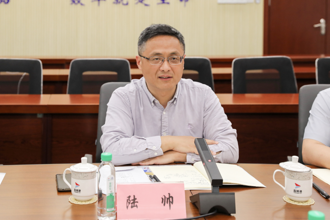 陸帥對高常青一行的到來表示歡迎,并對農發行長期以來的關心和支持表示感謝。他說,目前,鹽城港集團充分利用“一港四區”的區位優勢,實現錯位發展,積極打造大豐港區全國沿海農牧林產業特色港,射陽港區風電裝備產業特色港,濱海港區國家級能源產業特色港,響水港區國家級河海聯運物流示范港。并錨定淮河出海門戶定位,大力實施“淮河戰略”,全面推動與沿淮河港口企業深度合作,依托腹地資源稟賦優勢,不斷提升貨源組織水平,加大市場開拓力度,提供定制化服務。希望農發行能夠一如既往地關心和支持鹽城港的發展,基于雙方良好的合作基礎,聚焦項目、農業、金融等多個領域,不斷創新合作模式、善合作機制,共同推動鹽城港航事業的高質量發展。