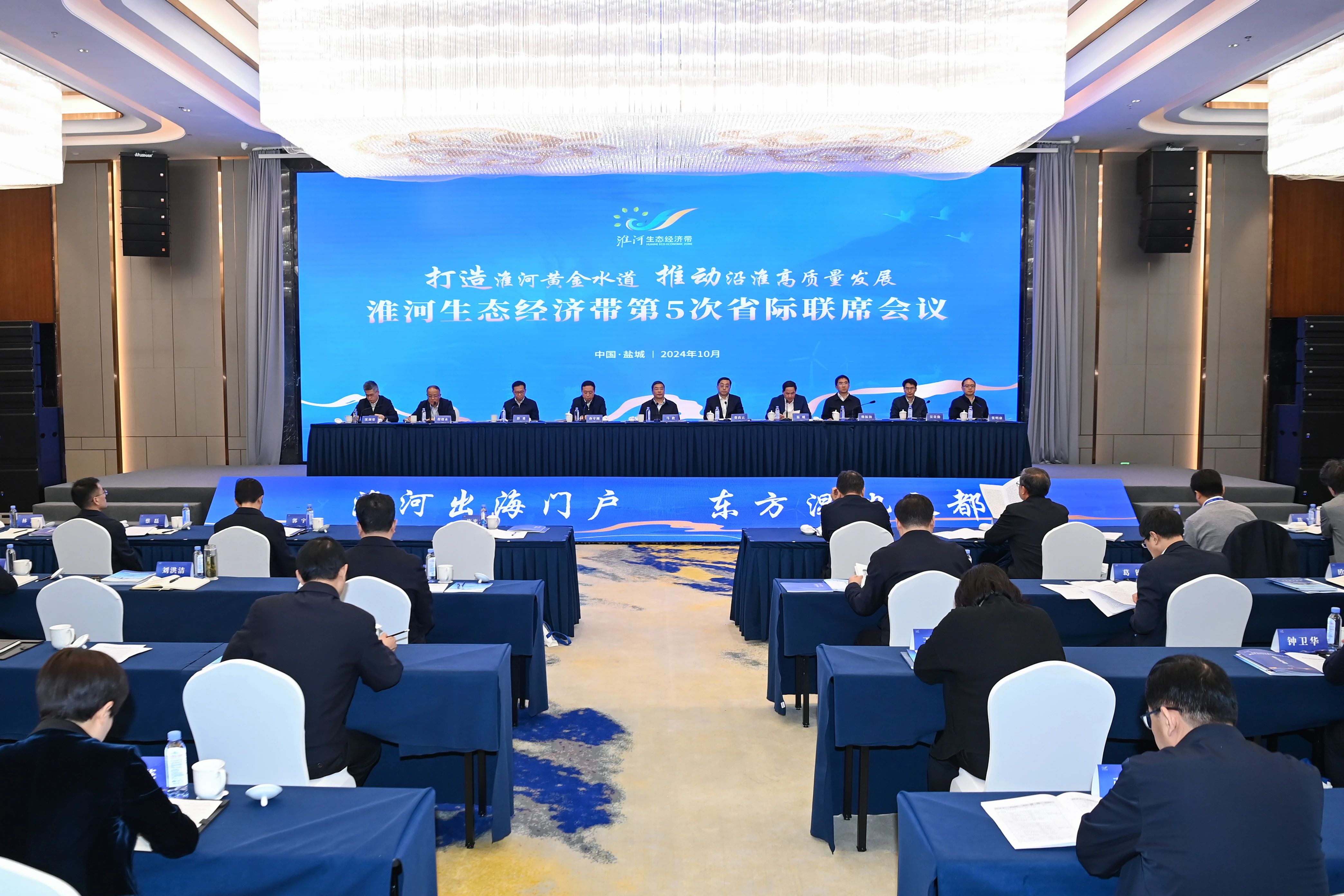 10月29日上午,淮河生態(tài)經(jīng)濟帶第五次省際聯(lián)席會議在我市召開,總結(jié)交流沿淮地區(qū)協(xié)同發(fā)展工作經(jīng)驗,謀劃新一輪省際重點合作事項,推動淮河生態(tài)經(jīng)濟帶高質(zhì)量發(fā)展。省委常委、常務副省長馬欣主持會議。安徽省委常委、常務副省長費高云,河南省委常委、常務副省長孫守剛,山東省副省長溫暖,湖北省副省長彭勇,國家發(fā)展改革委區(qū)域協(xié)調(diào)發(fā)展司副司長韓振海,生態(tài)環(huán)境部淮河流域生態(tài)環(huán)境監(jiān)督管理局副局長程緒水,水利部淮河水利委員會副主任吳貴勤,市委副書記、市長張明康出席會議。