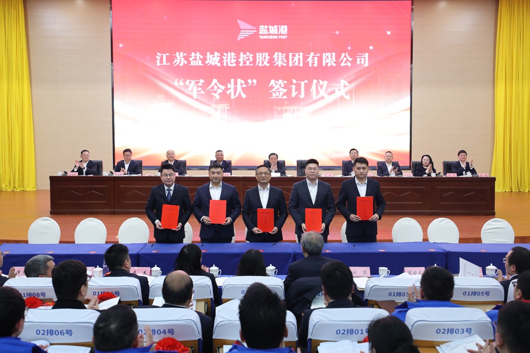 會議宣讀了關于表彰2024年度先進集體及個人的決定,并為獲獎代表進行頒獎;科技集團、大豐港集團、響水港集團等5家單位作表態發言。資本運營公司、大豐港集團、航運集團和集團投融資部等10單位和部門現場簽訂生產經營軍令狀。