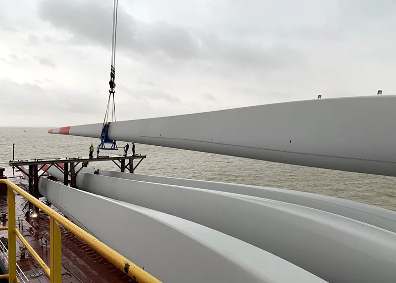 【業務再突破】鹽城港濱海港區首次成功裝卸大件風電葉片