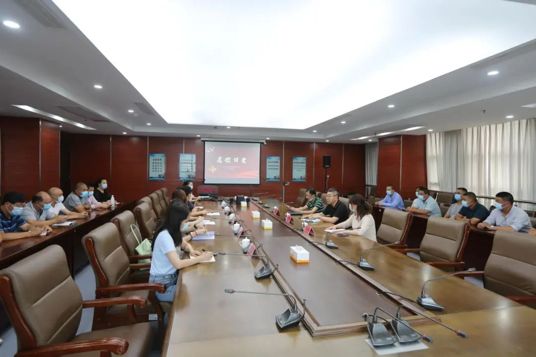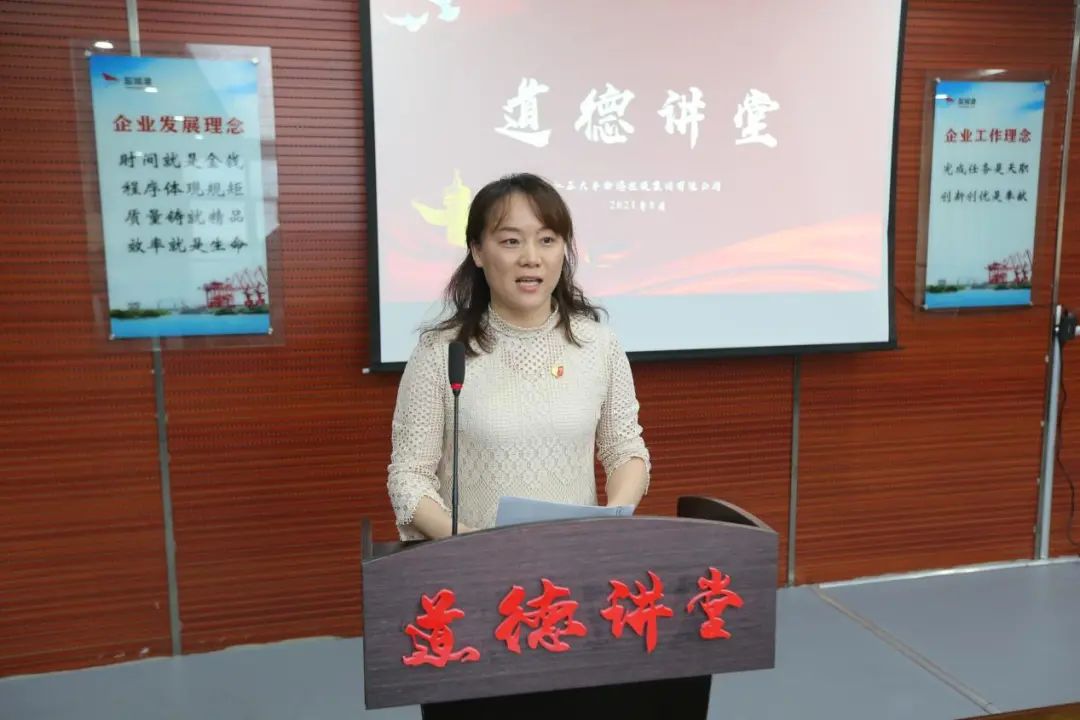 8月27日,大豐港區開展道德講堂活動,大豐港集團黨委委員、董事陸峰主持,集團工會、黨群工作部相關人員,各公司工會副主席、優秀職工代表,各公司子女參加高考的職工代表參加。