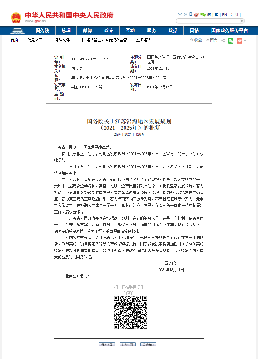 一、原則同意《江蘇沿海地區(qū)發(fā)展規(guī)劃(2021—2025年)》(以下簡稱《規(guī)劃》),請認真組織實施。