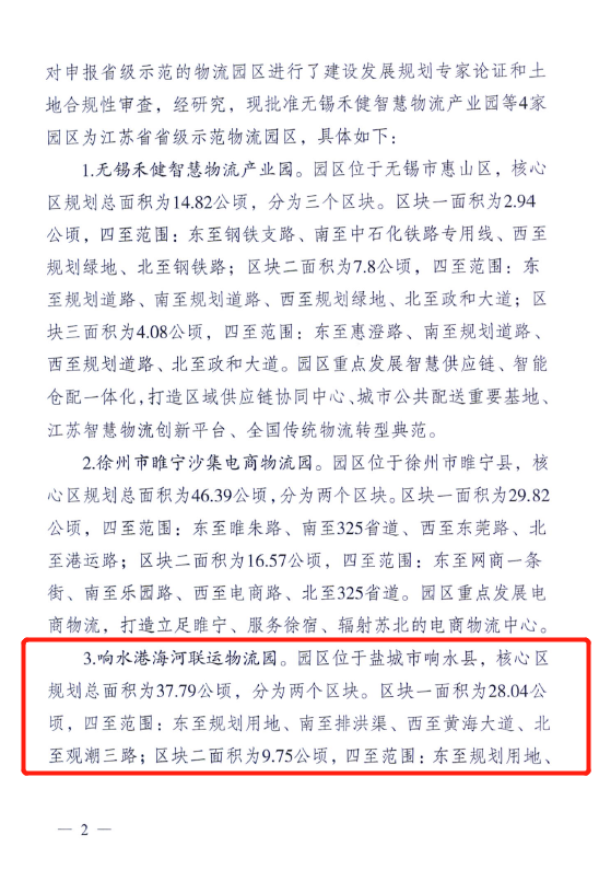喜訊!近日,響水港海河聯(lián)運物流園被省發(fā)改委批準(zhǔn)為江蘇省省級示范物流園區(qū)。