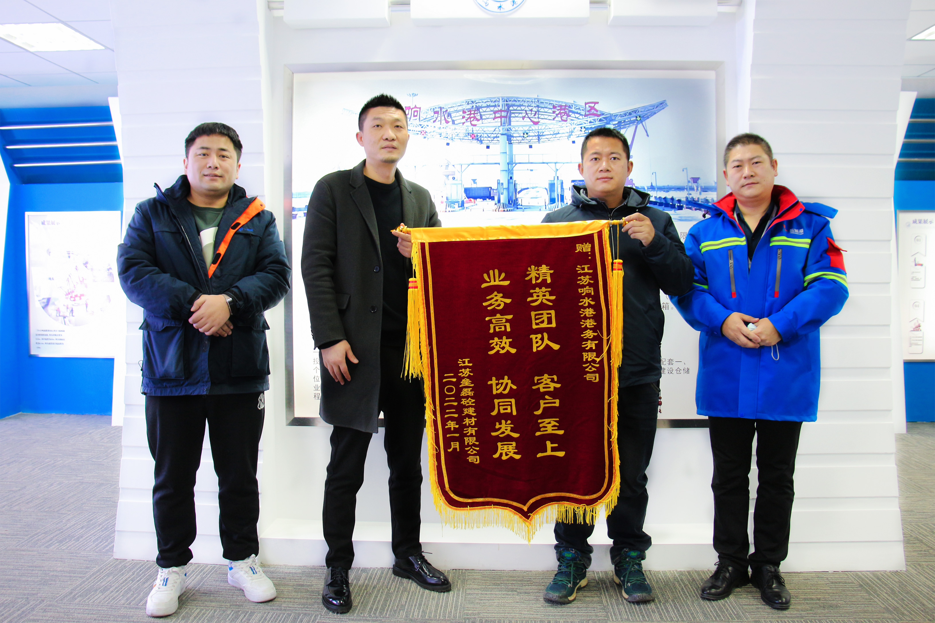窗外寒風凜冽,室內暖意融融。近日,江蘇壘磊砼建材有限公司和響水聯誼熱電有限公司分別向響水港區贈送一面錦旗,錦旗上飽含真情的文字,猶如寒冬里的陽光,給冬日帶來別樣的溫暖。這兩面錦旗代表著客戶對響水港區多年來富有成效合作的感謝和褒獎。