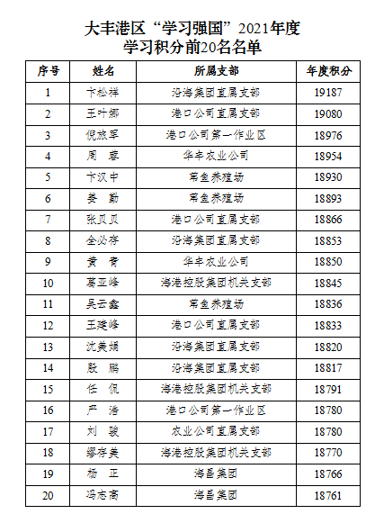 新的一年,為表彰先進(jìn)、激勵(lì)后進(jìn),持之以恒地提高港區(qū)全體干部職工的學(xué)習(xí)自覺性和主動(dòng)性,進(jìn)一步加強(qiáng)學(xué)習(xí)型黨組織建設(shè)。近日,大豐港區(qū)舉行“學(xué)習(xí)強(qiáng)國(guó)”2021年度先進(jìn)個(gè)人頒獎(jiǎng)儀式,根據(jù)“學(xué)習(xí)強(qiáng)國(guó)”APP大豐港區(qū)年度學(xué)習(xí)積分排名,對(duì)成績(jī)突出的前20名“學(xué)習(xí)達(dá)人”代表進(jìn)行了表彰,并頒發(fā)榮譽(yù)證書。