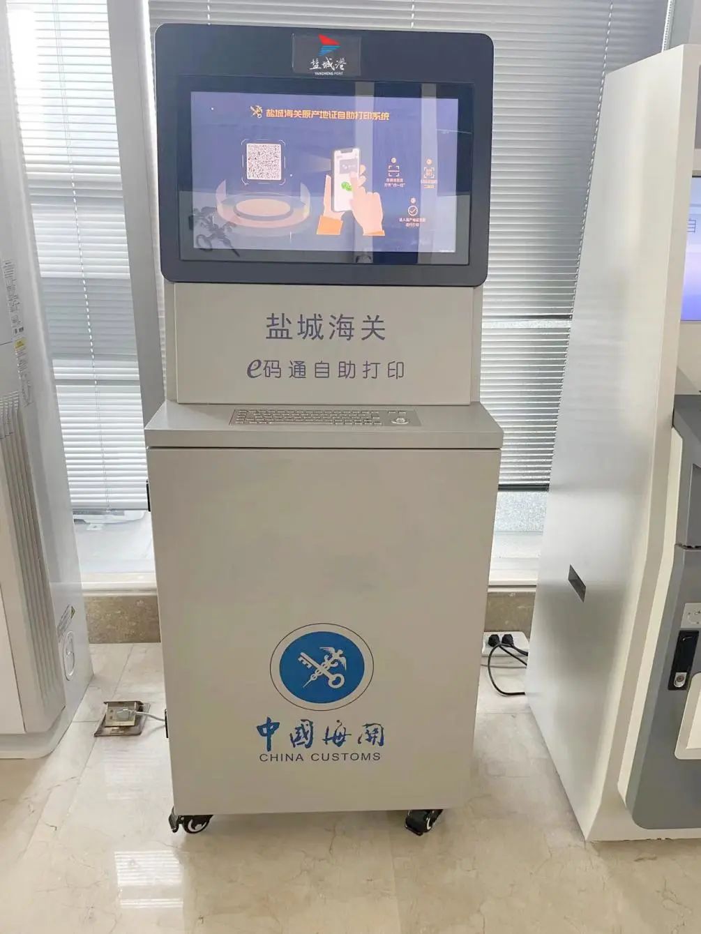 疫情防控期間,鹽城港提供了2臺原產(chǎn)地打印一體機(jī),一臺安裝于鹽城綜合保稅區(qū)1樓報關(guān)大廳,一臺安裝于鹽城海關(guān)駐大豐港辦事處,服務(wù)鹽城所有進(jìn)出口外貿(mào)企業(yè)原產(chǎn)地證自助打印,減輕現(xiàn)場窗口作為密集場所的防疫壓力,為企業(yè)提供便捷高效的線上服務(wù)。