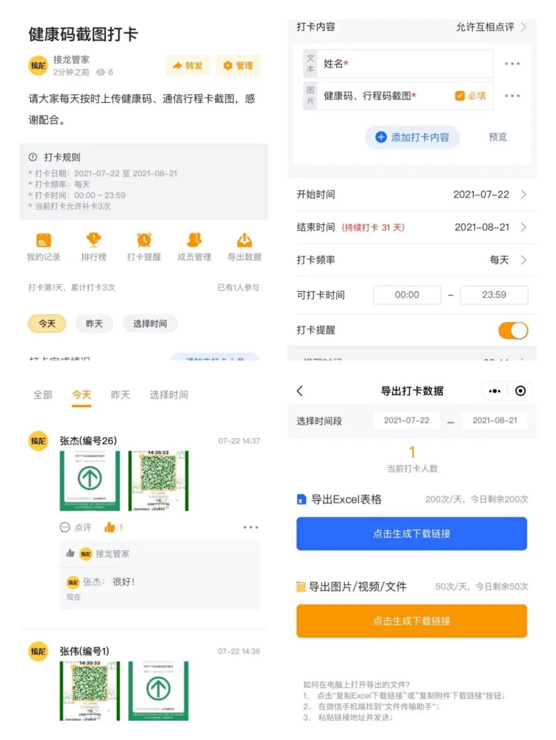 當(dāng)前,疫情防控形勢(shì)依舊嚴(yán)峻,面對(duì)防疫工作的艱巨繁雜,鹽城港港口公司散貨碼頭分公司堅(jiān)持疫情防控和安全生產(chǎn)兩手抓、兩手硬、兩促進(jìn),創(chuàng)新性使用“接龍管家Pro”微信小程序,助力做好防疫工作。原本安全管理人員每天要花3小時(shí)左右統(tǒng)計(jì)所有職工的信息,現(xiàn)在僅用2分鐘時(shí)間就能完成檔案登記的所有流程,大大提高了登記效率。