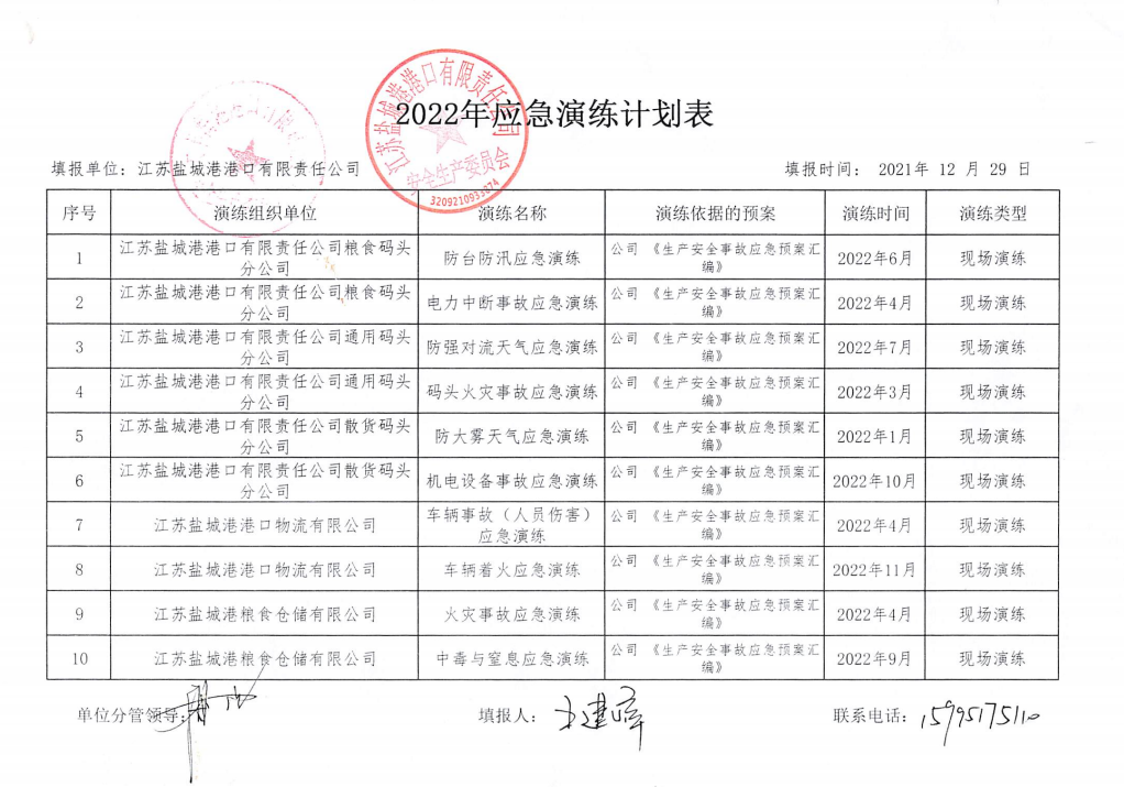 按照鹽城港集團及上級主管部門安全管理要求,港口公司積極制定應急演練方案,并嚴格按照演練方案時間節(jié)點,大力組織開展各項應急演練工作。