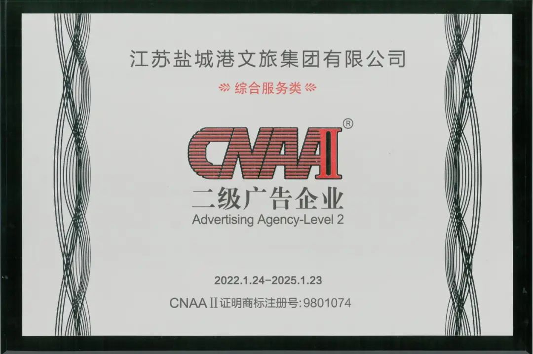 在鹽城港集團(tuán)上下喜迎集團(tuán)成立兩周年之際,6月13日,文旅集團(tuán)從中國廣告協(xié)會收到一份沉甸甸的賀禮——編號9801074“CNAAII”綜合服務(wù)類二級廣告企業(yè)資質(zhì)牌匾。這是目前鹽城地區(qū)唯一一家通過綜合服務(wù)類二級廣告企業(yè)資質(zhì)等級認(rèn)定企業(yè),標(biāo)志著鹽城港文旅集團(tuán)資質(zhì)創(chuàng)建取得了新的突破,為鹽城港集團(tuán)成立兩周年交出了一份亮眼的生日賀禮。