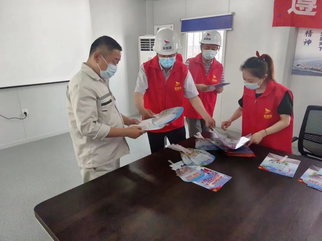 圍繞“安全生產月”活動主題,把習近平總書記關于安全生產的重要論述,國務院近期發布的安全生產十五條硬措施,港口作業、工地施工的注意事項和生活中用電防火等安全知識等定制成彩繪折頁和小扇子,發放給全體員工,同時組織人員深入項目工地、碼頭作業一線、社區趕集日發放給社區群眾。直面基層一線,提高全員安全意識,強化安全責任,在“最后一公里”上筑堤防潰。