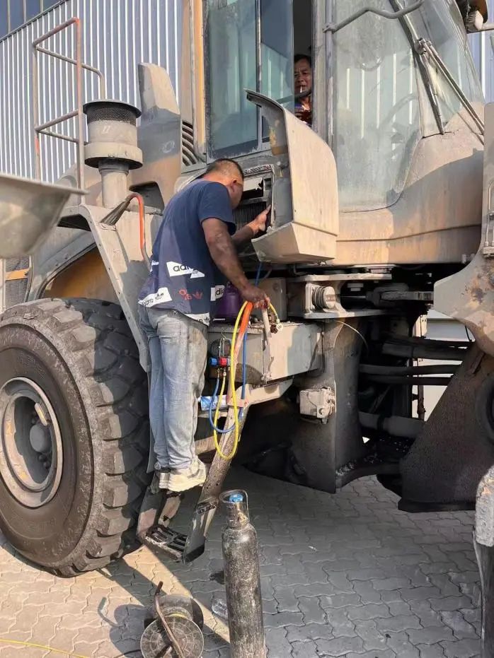 抗戰(zhàn)高溫作業(yè),技術(shù)保障先行。由于港口作業(yè)環(huán)境相對(duì)惡劣,機(jī)械設(shè)備容易積載各類(lèi)粉塵,加上港口機(jī)械振動(dòng)大,生產(chǎn)高峰時(shí)又基本24小時(shí)換人不換機(jī)連續(xù)作業(yè),因此各類(lèi)散熱系統(tǒng)及空調(diào)系統(tǒng)容易發(fā)生各類(lèi)故障,炎熱高溫天氣更容易引發(fā)各類(lèi)事故。為徹底消除該隱患,從6月中旬開(kāi)始,響水港技術(shù)條線根據(jù)工作計(jì)劃,組織相關(guān)專(zhuān)業(yè)人員對(duì)作業(yè)機(jī)械逐臺(tái)進(jìn)行了檢查,對(duì)檢查中過(guò)程中發(fā)現(xiàn)的各類(lèi)問(wèn)題立即落實(shí)相應(yīng)整改,據(jù)統(tǒng)計(jì),本次專(zhuān)項(xiàng)檢查共對(duì)3臺(tái)裝載機(jī)、1臺(tái)挖機(jī)設(shè)備散熱裝置進(jìn)行了維護(hù)清潔保養(yǎng),對(duì)6臺(tái)門(mén)機(jī)、4臺(tái)裝載機(jī)、1臺(tái)牽引車(chē)空調(diào)進(jìn)行了加氟等措施進(jìn)行了保養(yǎng)。