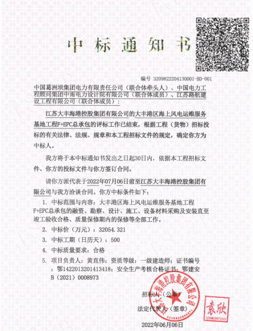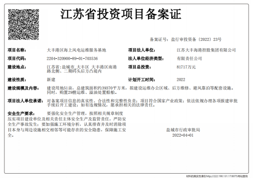 對照市城鄉建設重點項目年度目標要求,大豐港區全力推進海上風電運維服務基地工程項目前期手續報審工作,緊盯重點環節、重點問題,與區政府、行政審批局、港區管委會就項目各審批環節進行對接溝通,就項目建設過程中存在的問題和亟待解決的困難進行會商。目前,報建工作正緊鑼密鼓展開,項目立項、招投標等工作已完成,大豐港區配合中標單位中國葛洲壩集團電力有限公司、中國電力工程顧問集團中南電力設計院,就項目整體布局規劃進行多次現場踏勘,現正開展規劃總平圖報審,對接初步設計、施工圖設計編制及審查工作,提前啟動環評、安評等要件編報工作。