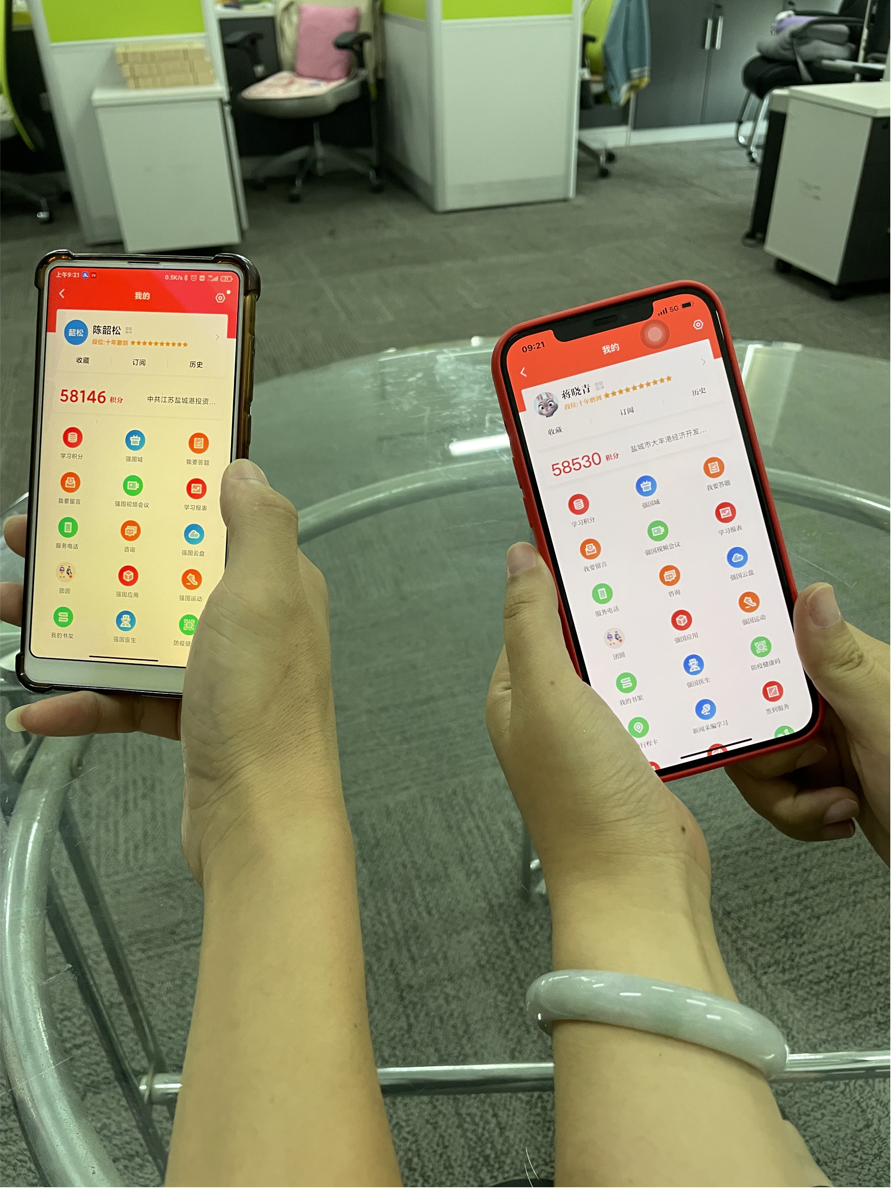 除了“學習強國”APP之外,黃海港城支部充分利用基層黨組織統一活動日、“三會一課”等時機,開展雙人PK,激發學習熱情。
