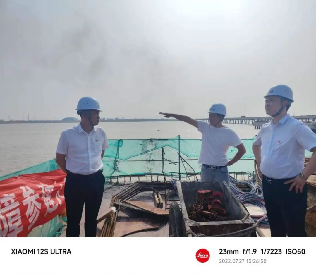 在深入基層一線現場,慰問組觀摩了濱海港區U型港池項目施工現場、射陽港區3.5萬噸航道疏浚工程及大豐港區工作船安保設施工程等項目現場,每到一處都仔細查閱施工時間記錄及防暑降溫物資發放登記表,確保每個工人都能合理安排施工作業時間,及時領取到防暑降溫物資。慰問組還檢查了現場施工環境、疫情防控及施工日志登記簿,詳細了解各項目施工及防疫工作實施情況。