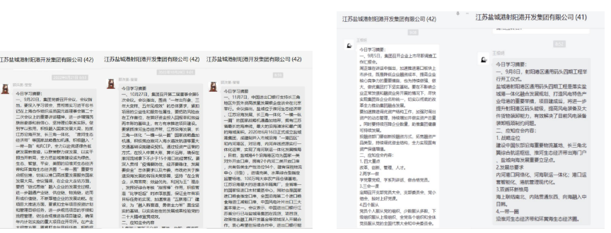 思想的統一引領行動的統一。近階段,重點圍繞應知應會常識,每天早上九點,港區綜合部專人將摘編好的應知應會知識點發布到工作群,供所有員工學習。內容涵蓋領導重要講話、時政熱點、企業文化、崗位職責等,員工結合自身工作安排進行學習。員工們紛紛表示,比起自己平時雜亂學,重點知識點的匯總學習猶如“啟明星”,輕松從“要我學”轉變為“我要學”,在學習中不斷反省自身不足,查漏補缺立行立改,為高效率高標準完成工作夯實思想根基。
