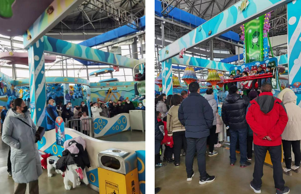 據(jù)統(tǒng)計(jì),春節(jié)期間共接待游客2萬(wàn)余人次。其中海洋劇場(chǎng)內(nèi)人氣爆滿,處處洋溢著游客們喜悅的笑容。小火車、旋轉(zhuǎn)木馬、海盜船、碰碰車等場(chǎng)館,處處飄蕩著孩子們歡快的笑聲。同時(shí),景區(qū)管理部設(shè)立了美食小賣部,多彩多樣的美食,暖心又暖胃,為游客們提供貼心服務(wù)。