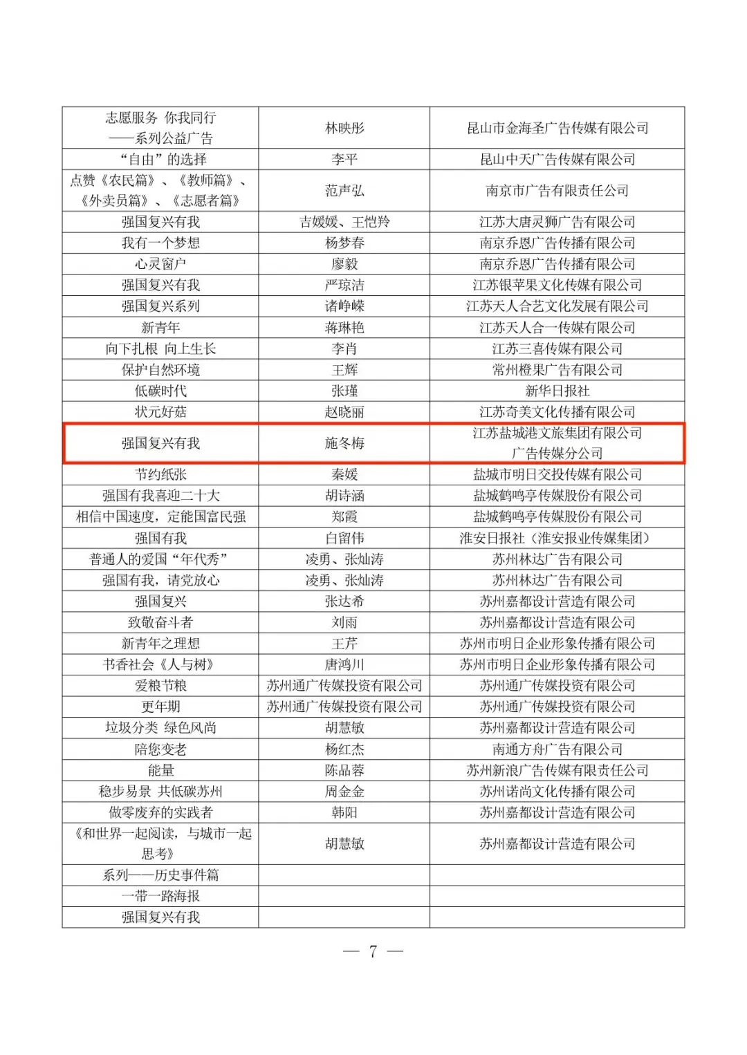 據悉,“江蘇省優秀廣告作品大賽”由江蘇省廣告協會主辦,迄今為止已舉辦28屆,吸引了省內數百家公司參與,每屆賽事均有數千個作品參加比賽。本屆大賽,文旅集團廣告傳媒分公司憑借過硬的專業實力榮獲職業組公益類作品銅獎和職業組公益類作品優秀獎。