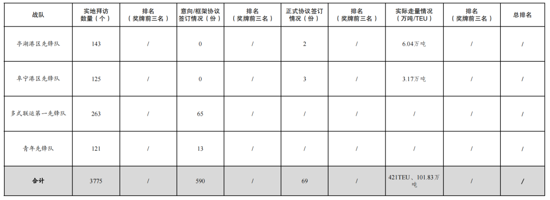活動開展以來,累計拜訪客戶數(shù)量3775家,簽訂意向/框架協(xié)議數(shù)量590份,簽訂正式協(xié)議69份,實際走量421TEU、101.83萬噸。
