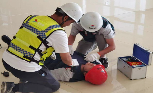 理論培訓(xùn)結(jié)束后,各港區(qū)培訓(xùn)人員在建湖港區(qū)大樓觀摩學(xué)習(xí)了觸電傷害安全事故應(yīng)急演練。