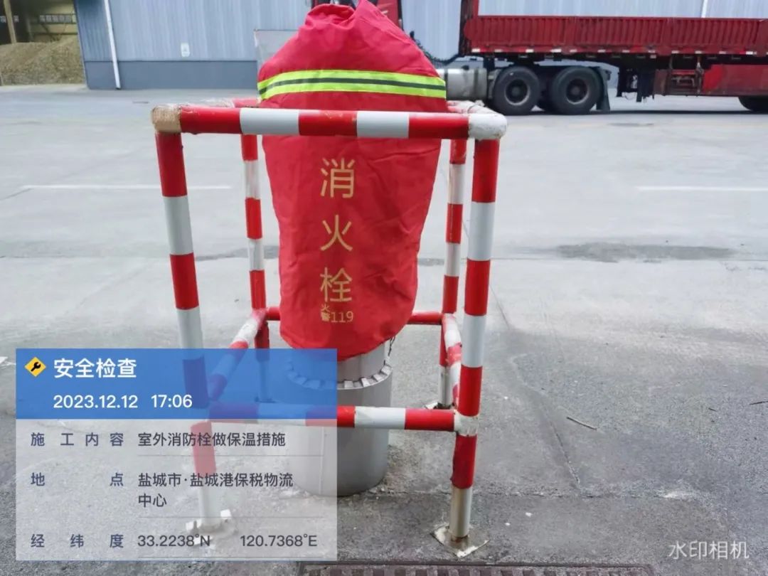 保稅物流中心堅持“抓早、抓緊、抓實、抓細”的原則對公司區域內消防管網開展冬季防凍維保工作。主要是對庫區室外消火栓、消防管網加裝防凍保溫措施,防止消防管道因極寒天氣發生冰凍、破裂,并進一步強化消防系統巡查,切實做到每臺設備有人管,每條管線有人查,確保各消防設備安全平穩過冬。