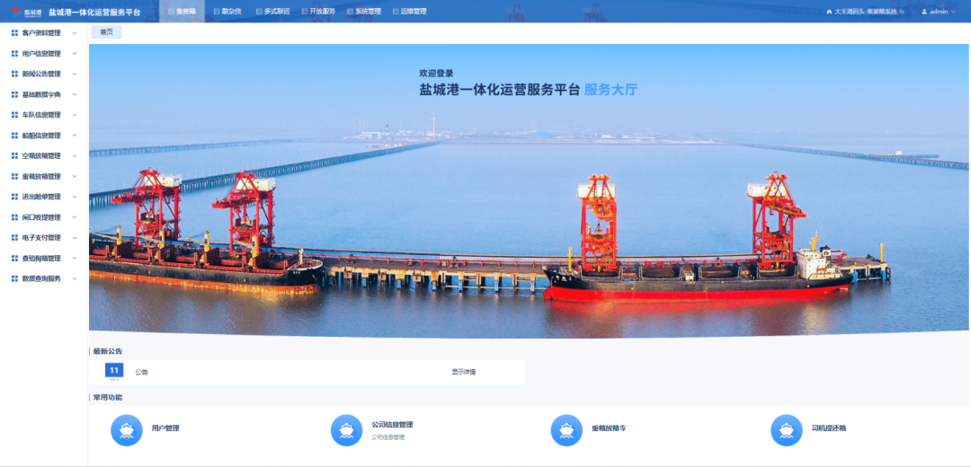 網(wǎng)上營業(yè)廳是綜合性客戶服務中心平臺,將口岸服務功能高度集成,提供在線咨詢、預約、支付等服務,以及數(shù)據(jù)查詢、統(tǒng)計分析等功能,實現(xiàn)各碼頭TOS系統(tǒng)、鹽城電子口岸平臺、海關海事、客戶自有服務等系統(tǒng)對接互聯(lián),是現(xiàn)代港口服務的重要創(chuàng)新,利用互聯(lián)網(wǎng)技術和信息化手段,提高了港航企業(yè)的服務水平和運營效率,同時也為貨主等用戶提供了更加便捷、高效的服務體驗。