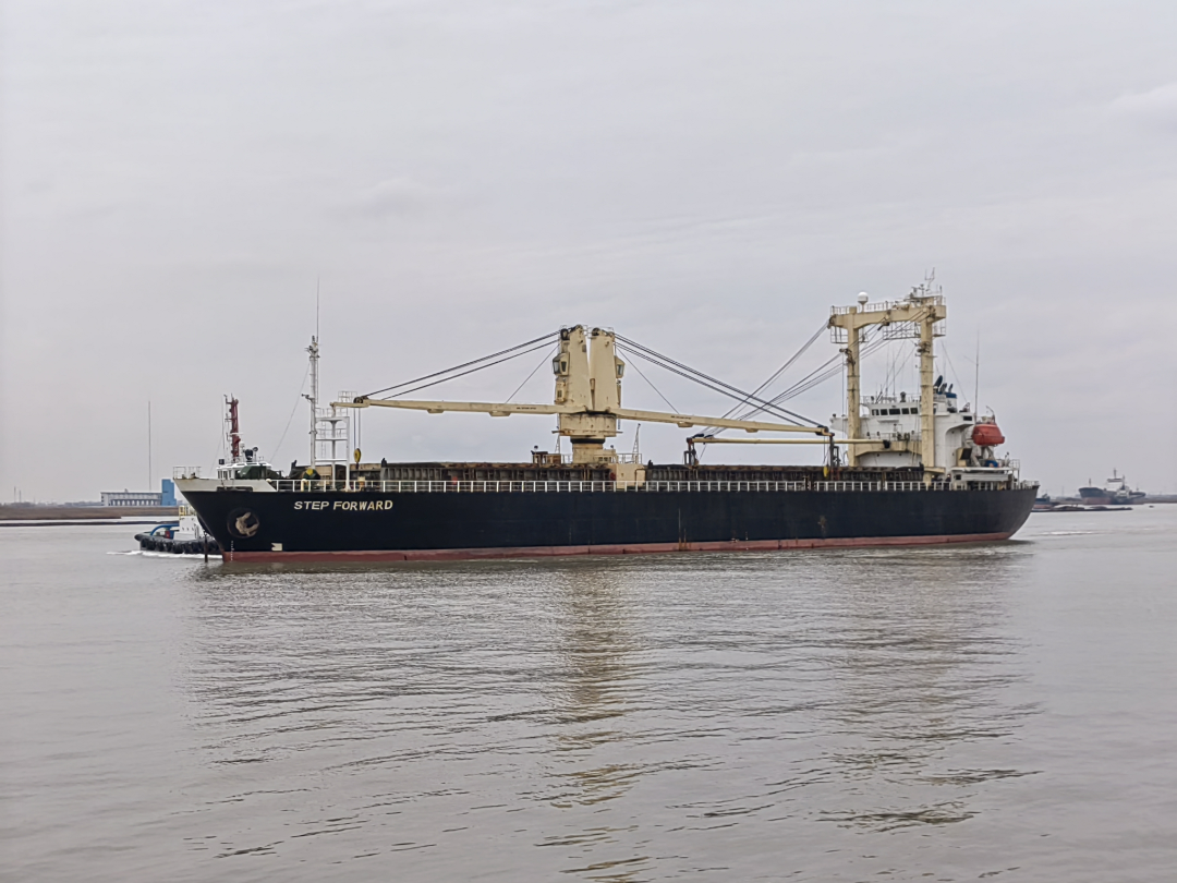 12月16日上午,在鹽城港引航站引航員的精心引導下,巴拿馬籍“STEP FORWARD”輪(“進步”輪)順利靠泊響水港港務碼頭4#泊位。“進步”輪船長114.5米,吃水7.9米,從印度尼西亞運載約9170噸的鎳鐵,貨值約1688萬美元。該輪是鹽城港響水港區口岸正式開放以來“到訪”的首艘入境國際船舶,標志著鹽城港響水港區外貿業務實現從無到有的新突破。