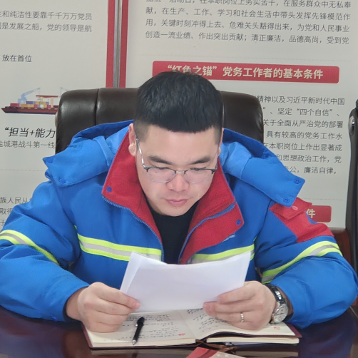 入黨十余年,轉(zhuǎn)眼我也到了退休的年紀,很榮幸見證了射陽港區(qū)從起步到融入鹽城港集團高質(zhì)量發(fā)展的整個歷程。乘著建設“五新示范港”的東風,我們這樣的“老頭子”也能學習到線上模塊、小程序的搭建和使用流程,我將持續(xù)發(fā)以黨員身份嚴格要求自己,守好最后一班崗。
