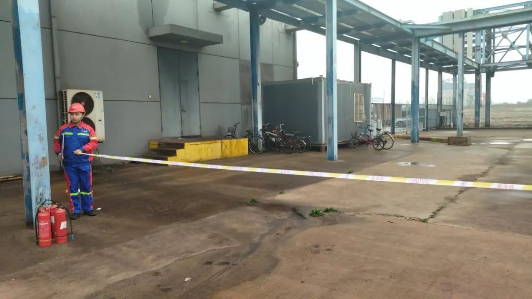 通訊警戒組在安全區(qū)域拉起警戒線,救援組迅速穿戴防護(hù)用品,緊急切斷TK102閥門。