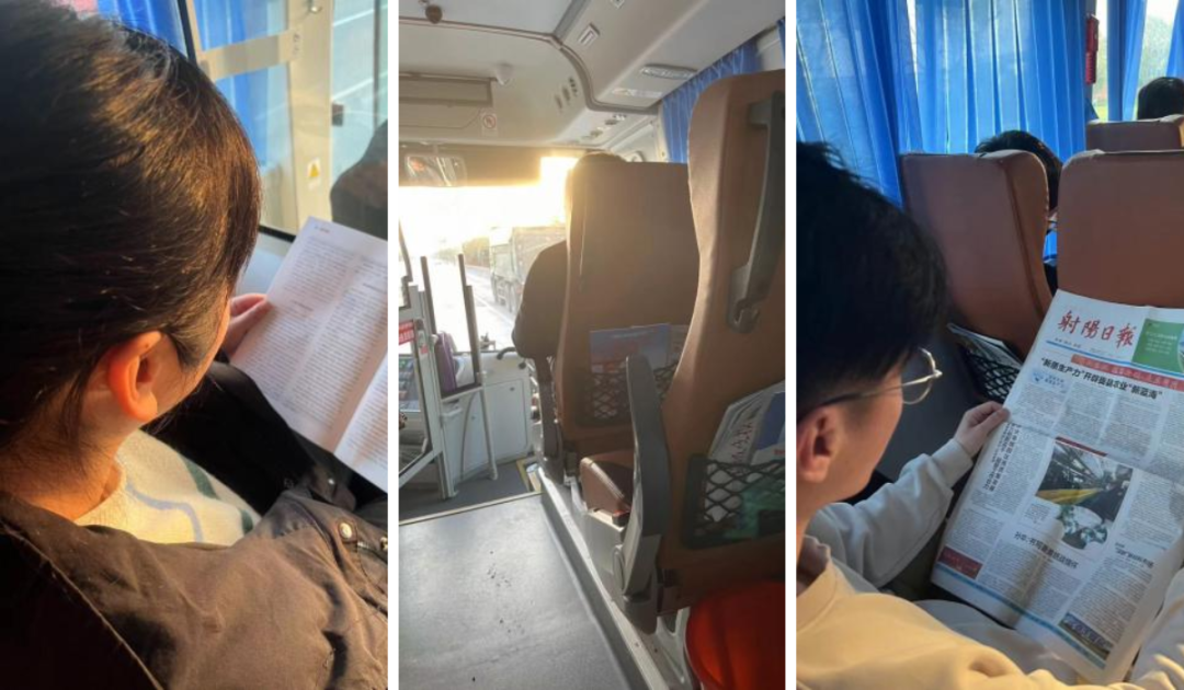 4月初號召大家帶來家中閑置圖書,與集團報刊、訂閱報紙一起裝點班車,漸漸地班車上從每人各自捧著手機的沉默變成展開報紙、翻閱書籍的安靜,小小巴士裝載著滿滿書香一路向前。