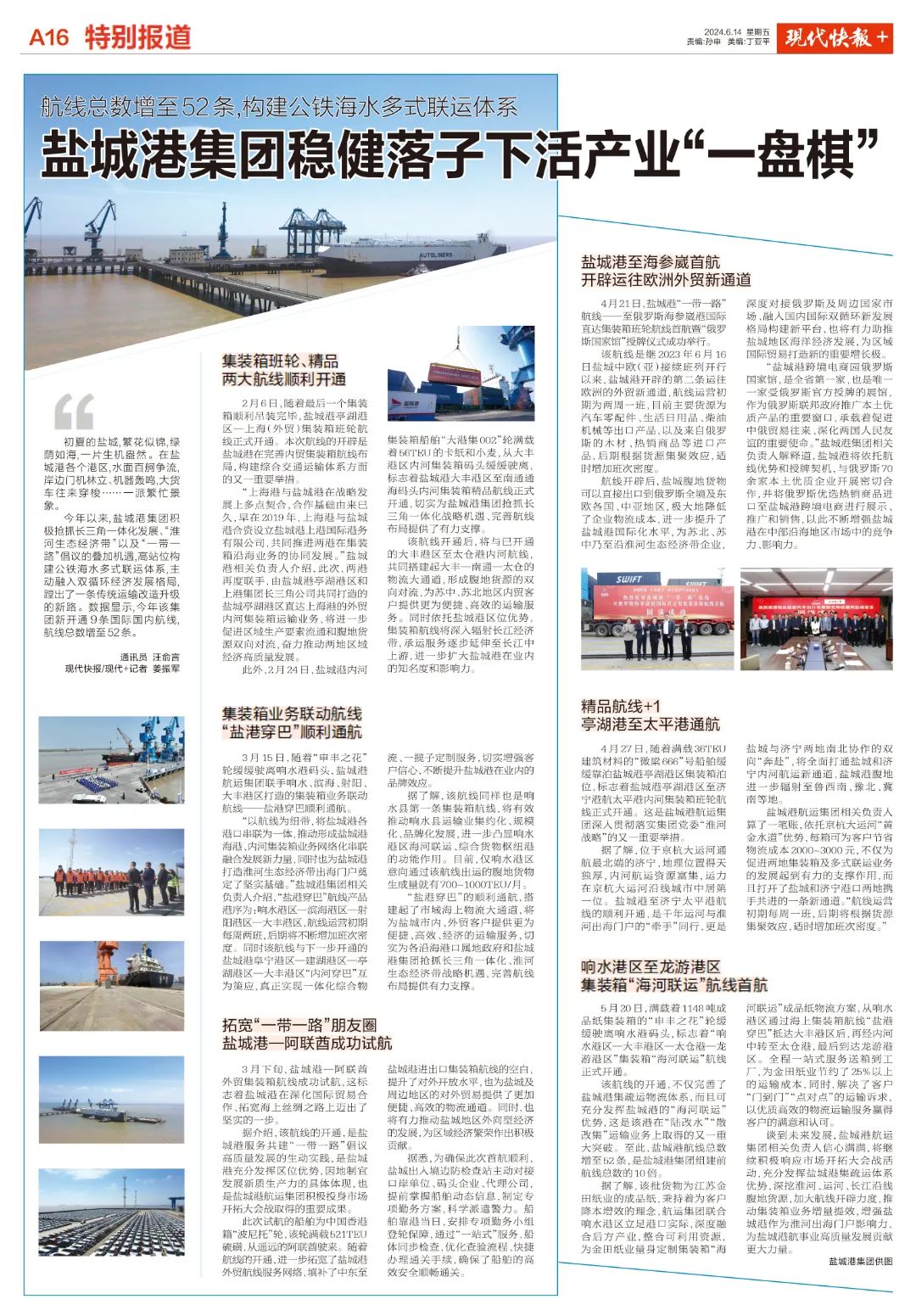 今年以來,鹽城港集團積極搶抓長三角一體化發展、“淮河生態經濟帶”以及“一帶一路”倡議的疊加機遇,高站位構建公鐵海水多式聯運體系,主動融入雙循環經濟發展格局,蹚出了一條傳統運輸改造升級的新路。數據顯示,今年該集團新開通9條國際國內航線,航線總數增至52條。