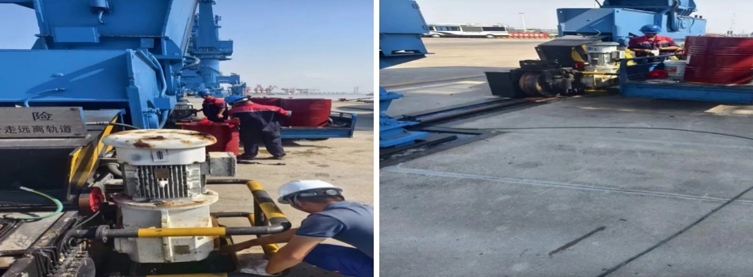 坐標(biāo)定位:響水港區(qū)龍門(mén)吊軌道減速箱維護(hù)現(xiàn)場(chǎng)